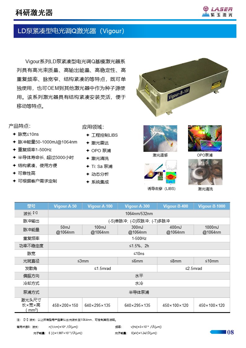 LD泵緊湊型電光調(diào)Q激光器(Vigour)
