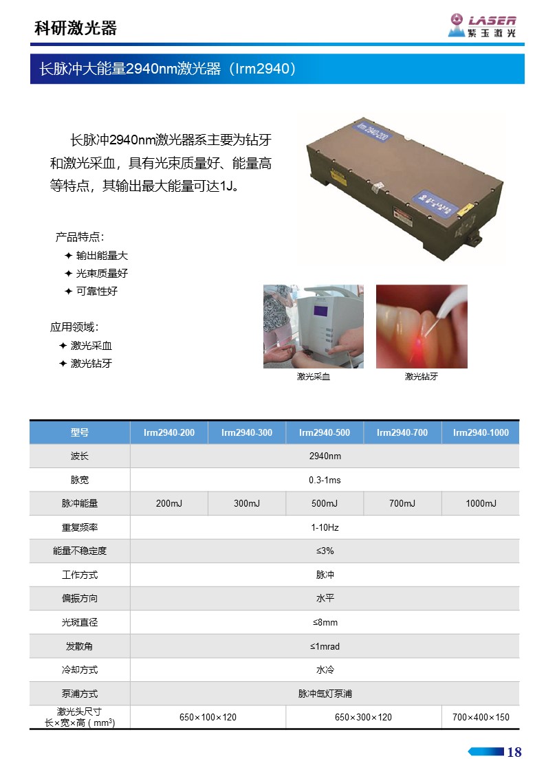 長(zhǎng)脈沖大能量2940nm激光器(Irm2940)