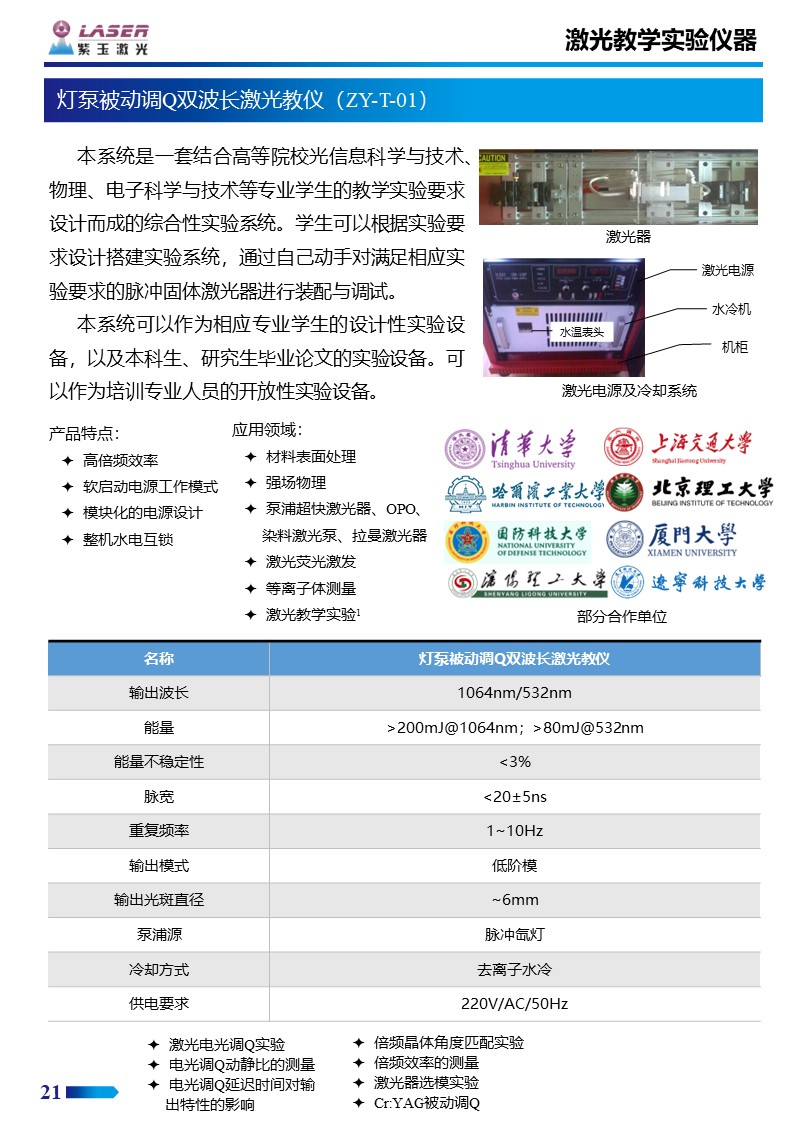 燈泵被動(dòng)調(diào)Q雙波長(zhǎng)激光教儀(ZY-T-01)