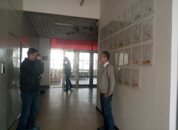 記著拍攝了崔建豐總經(jīng)理與專利墻的合影。